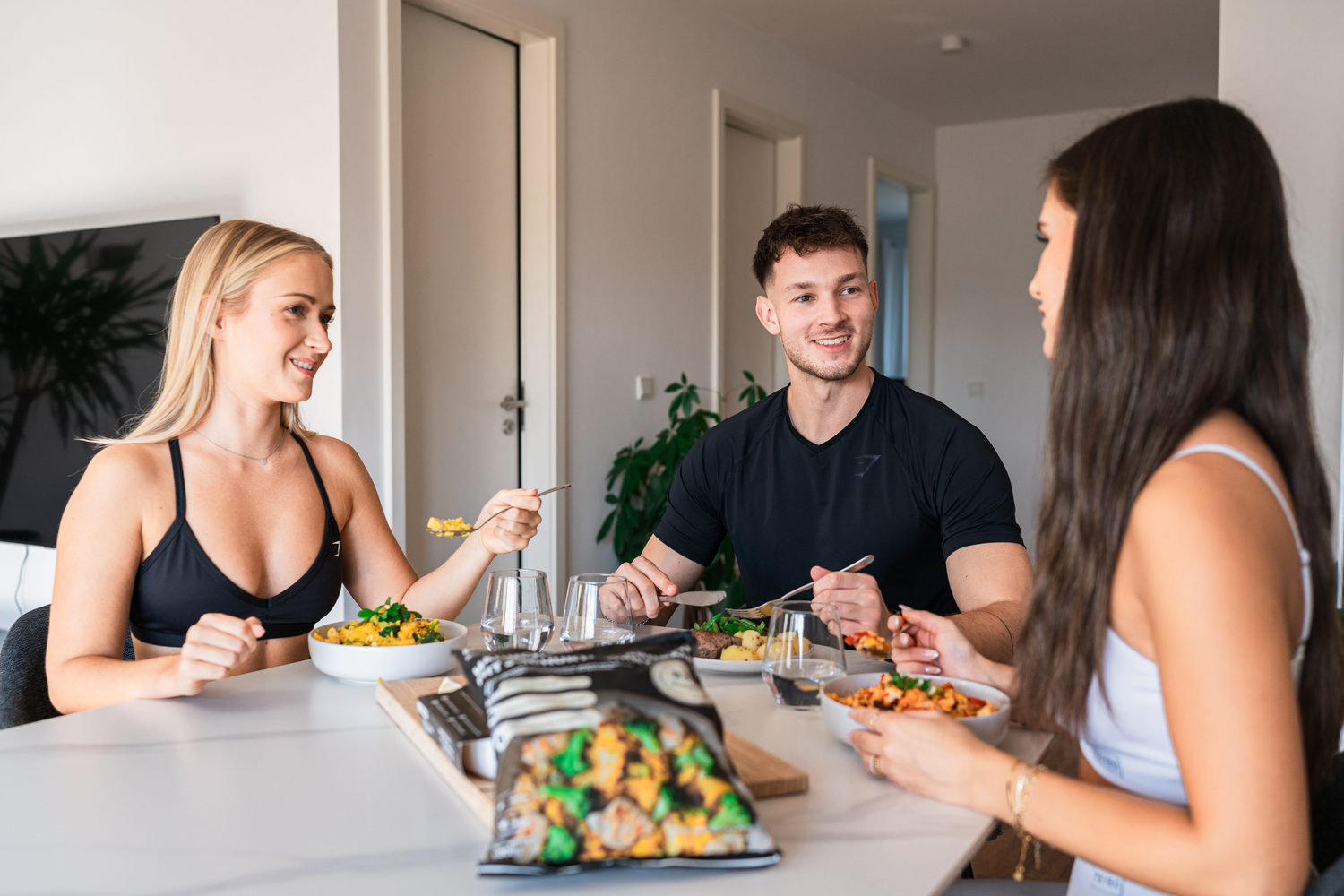 When frozen, the dishes are heated in the microwave for about 8-12 minutes at approx. 700W. When defrosted, they only need 3-4 minutes in the microwave.