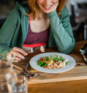 À la fin de la journée, tu te sens vraiment fier de pouvoir suivre une alimentation saine et tu savoures un repas sain pour finir !